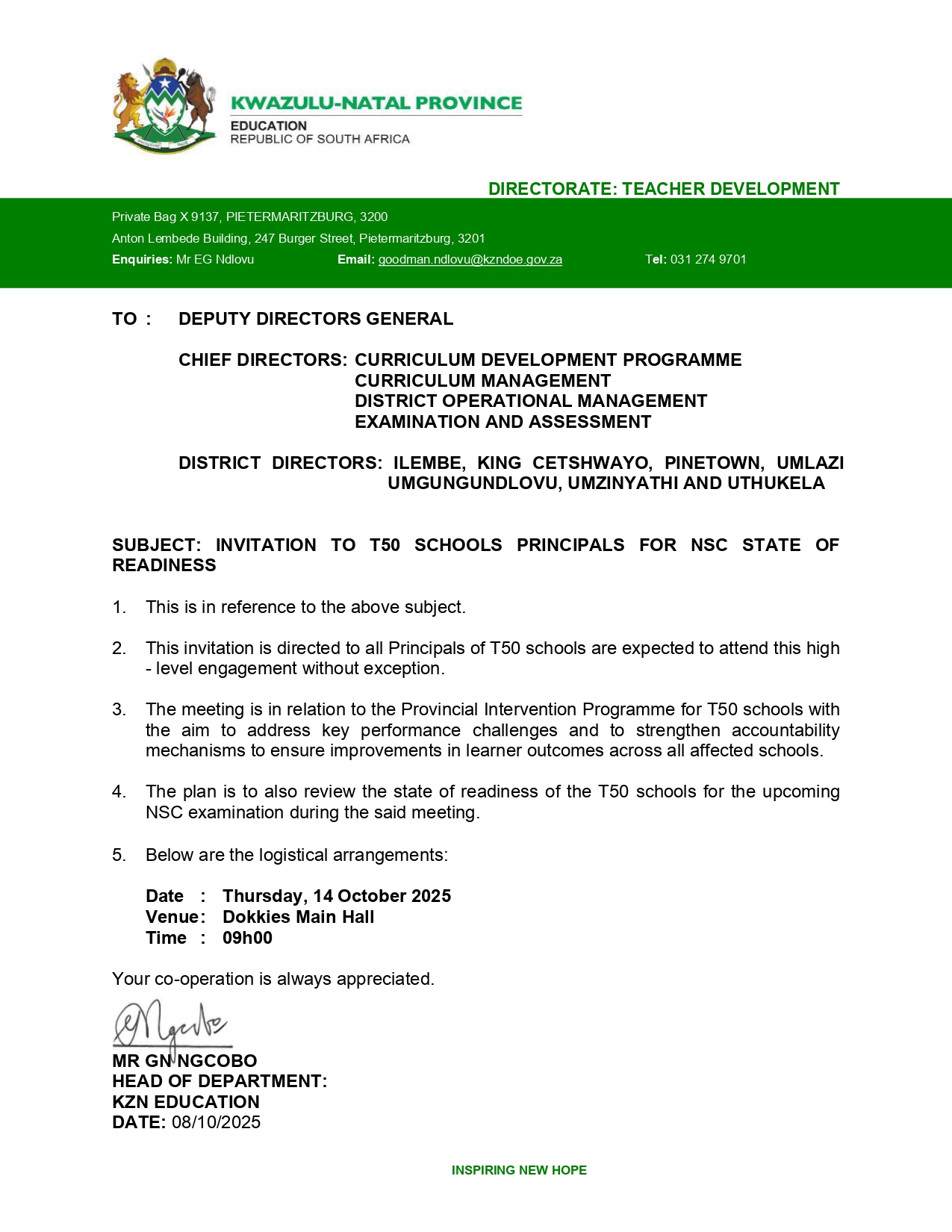 This important session was led by Ms TA Gumede, Chief Director: District Operations Management, and Mr N Madadi, Ugu District Director.