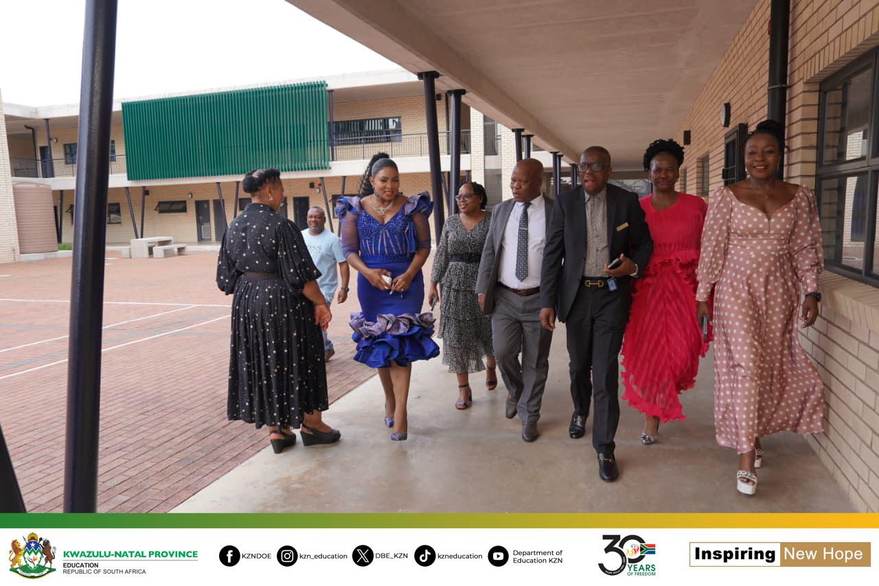 The visit commenced at Ezakheni High School, where the MEC was received by the uThukela District Director, Ms. Mapaseka Mokoena, together with senior officials from the KwaZulu-Natal Department of Education.