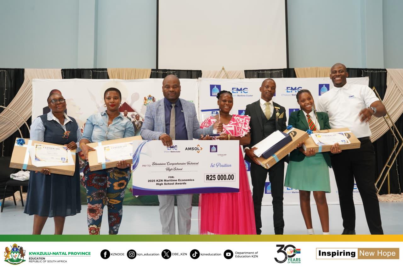 The awards ceremony brought together key stakeholders in maritime education to recognise commitment, innovation and excellence in advancing Maritime Studies and Maritime Economics within KwaZulu-Natal schools. The event underscores the Department’s strategic focus on strengthening specialised curriculum streams that contribute meaningfully to skills development and the growth of the ocean economy.
